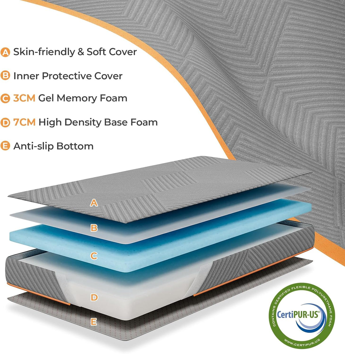 【Premium Comfort and Support】- Crafted with high-quality materials, this folding mattress offers exceptional comfort and support. The dual-layer construction includes a 3cm soft and cool memory foam layer that conforms to your body, providing a cozy sleeping surface. Beneath that, a 7/12cm supportive core helps to evenly distribute your body weight, relieving pressure points and ensuring a restful sleep